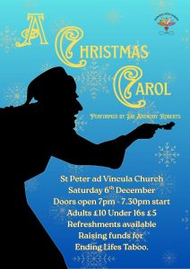 https://buytickets.at/endinglifestaboo/1893201 🎄 A Christmas Carol Performed by Dr Anthony RobertsMusic by Jamie CunliffeStep into the spirit of the season with a truly atmospheric retelling of Charles Dickens’ classic A Christmas Carol. Join Dr